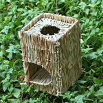 A rectangular linen sleeping house designed to provide rabbits with a private and comfortable space for rest, featuring a side entrance door and a front window for ventilation and visibility.